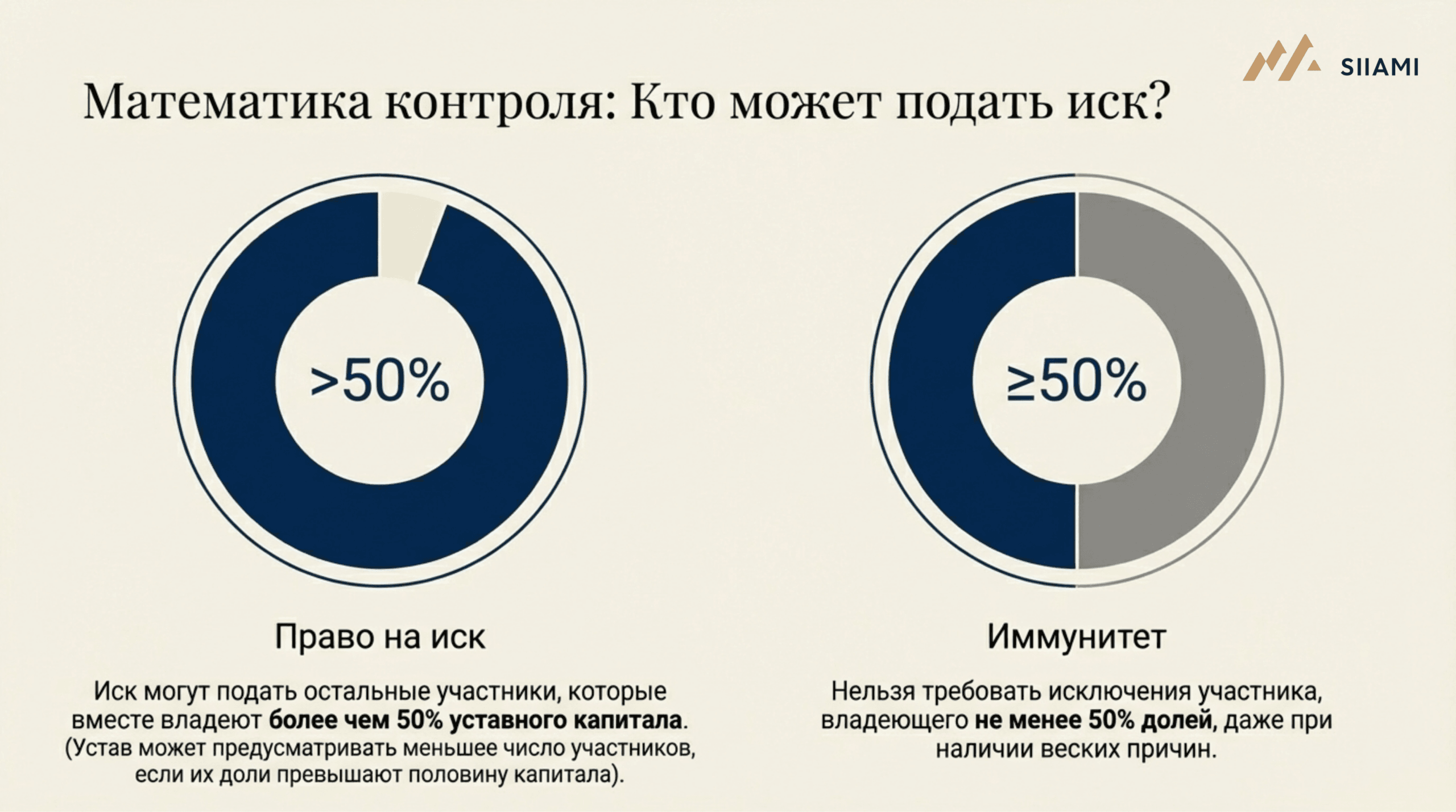 Нельзя требовать исключения участника, владеющего не менее 50% долей в уставном капитале, даже если существуют веские причины для его исключения.