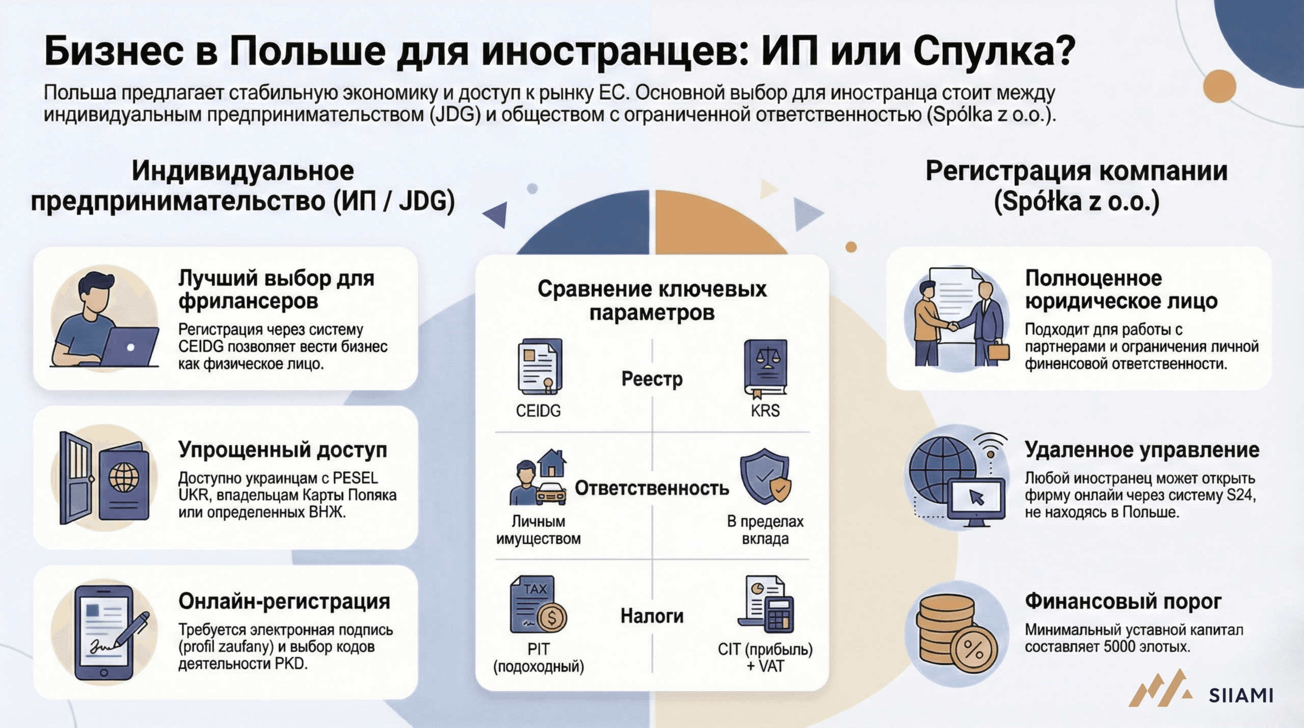 Открытие бизнеса в Польше: помощь SIIAMI в регистрации фирмы или ИП, профессиональная консультация юриста